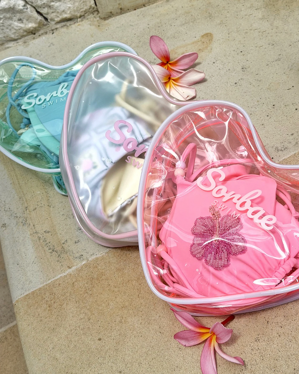 To celebrate the launch of Sorbae Swim we're giving everyone the perfect incentive. Buy all three of our beautiful bikinis and pay for only 2. That's a massive $85 saving. PLUS you still get our cut little bikini swim bags in the three Sorbae colours.